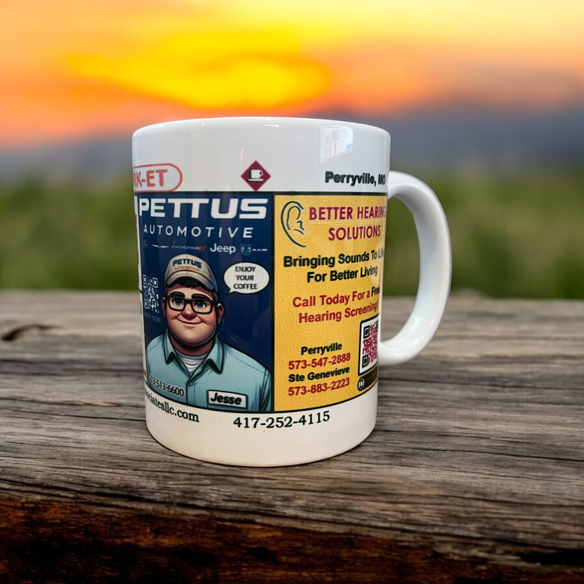 Our mugs are placed in multiple restaurants to showcase small businesses around the state. To learn more, call us at 417-252-4115 in Willow Springs, MO.